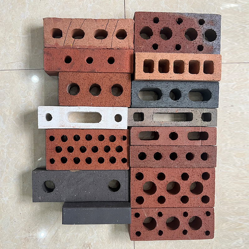 Bricklaying: red bricks, perforated decorative bricks, porous bricks, metallic glazed bricks, and unglazed bricks.